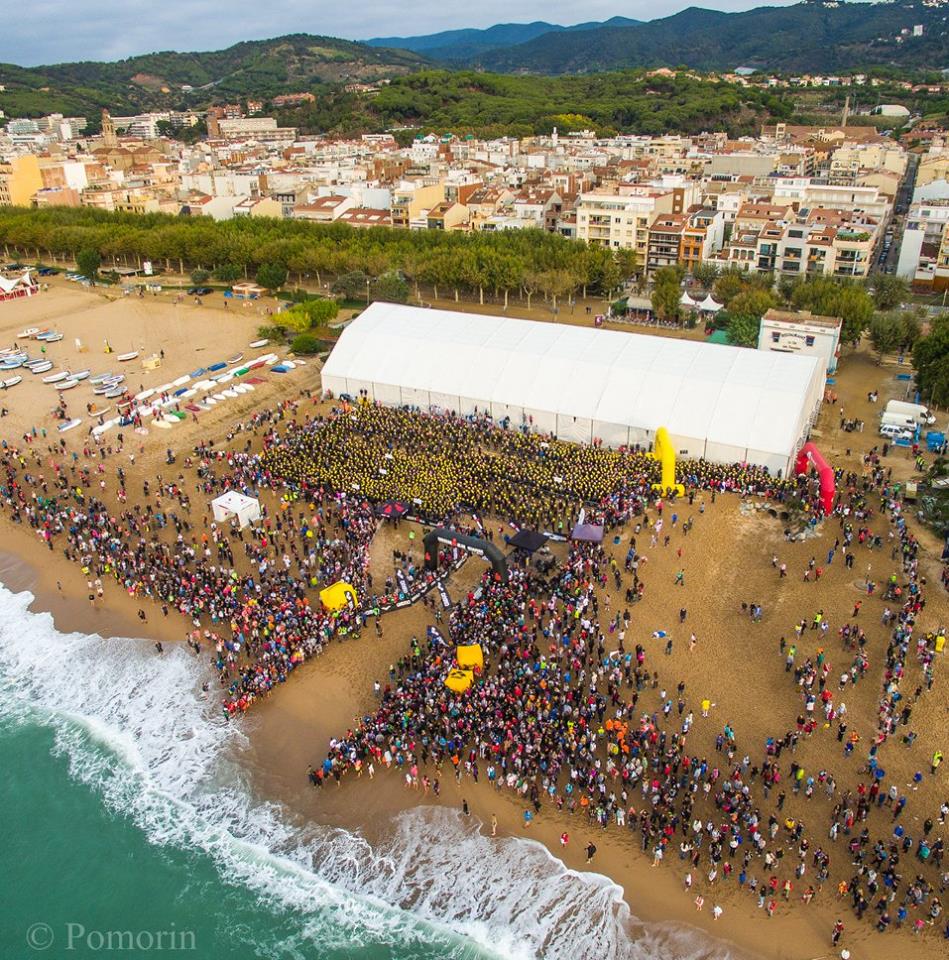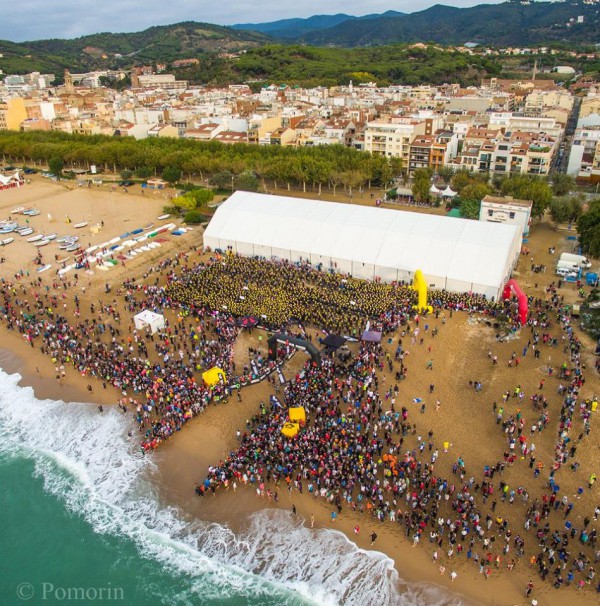 А сегодня проводится сам Ironman, народу - полно. Старый Каталан это дело поснимал - вот полный комплект (там предыдущий Ironman этого года и начало сегодняшнего). Он еще и сверху поснимал - вот так это дело выглядело перед первым стартом.