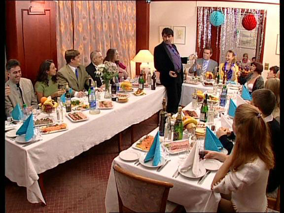 Я, если честно, больше 10 минут не выдержал, особенно когда раскрылась завязка сюжета (сынуля прокурора пошел проветриться во двор, запер входную дверь, а ключи потерял; в результате вся компания два дня сидела дома у прокурора - типа как не было других ключей и дверь никто не мог открыть), поэтому посмотрел до конца на перемотке. Кокшенов не разочаровал - концовка была особенно светлая.