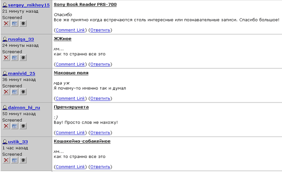 Ну, что ж, на моем примере они могут убедиться, что все эти атаки ботов попадают именно туда, куда нужно - в молоко. Я эти записи просто не расскриниваю, так что все впустую. А меня не раздражает - за секунду можно пробежать глазами пару десятков этих сообщений. Тем более что я их уже мгновенно отличаю от обычным, неботовых. Впрочем, если вдруг и приму за бота обычный коммент из серии "надо что-то сказать, лишь бы что-то сказать" - не велика потеря.