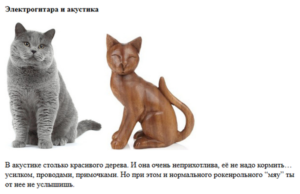 Сергей Тынку сделал сравнение гитар в виде картинок с котегами. Получилось, на мой взгляд, забавно.
