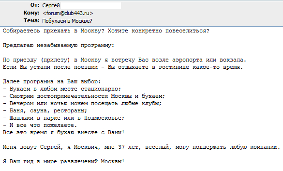 Забавный спам пришел - культурную программу в Москве предлагают. А я как раз собираюсь посетить.