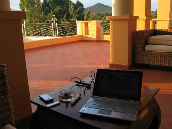 Но сегодня - увы, все в облаках и периодически идет дождь. При этом только и остается, что сидеть на балконе и стучать по ноутбуку.