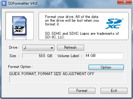 1. Скачиваем бесплатную программу SD Card Formatter и форматируем карту памяти microSD 64 Гб с помощью этой программы с параметрами по умолчанию. Она отформатирует ее в exFAT.