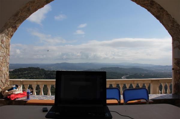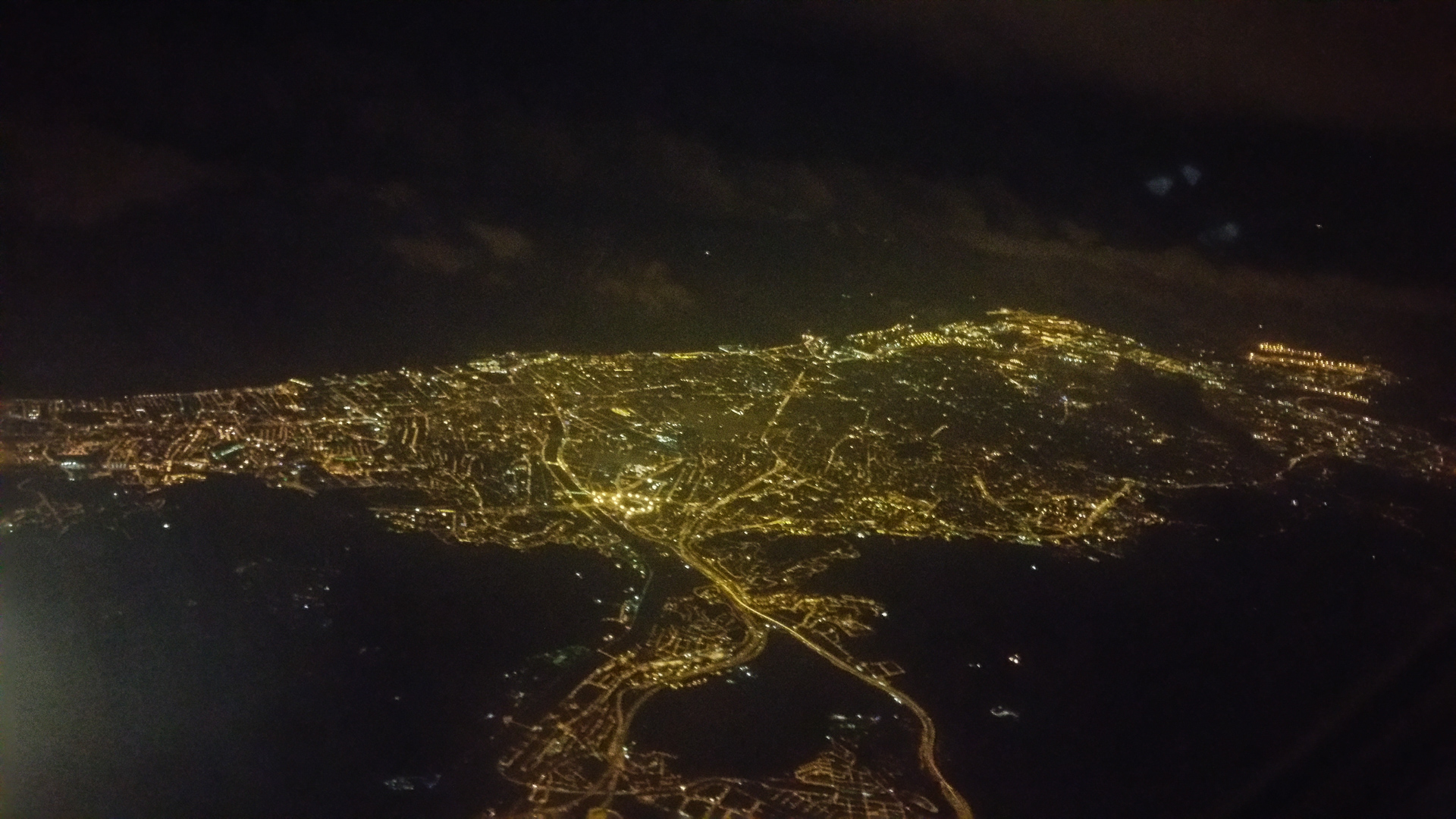 Вернулся из Чехии. Летел ночью, вокруг Барселоны были сплошные грозы, из самолета это выглядело просто потрясно: огни большого города, вдали - силуэты гор, за которыми периодически вспыхивали молнии. Правда, поймать эти моменты на фото я не смог, так что просто ночная Барселона с высоты.