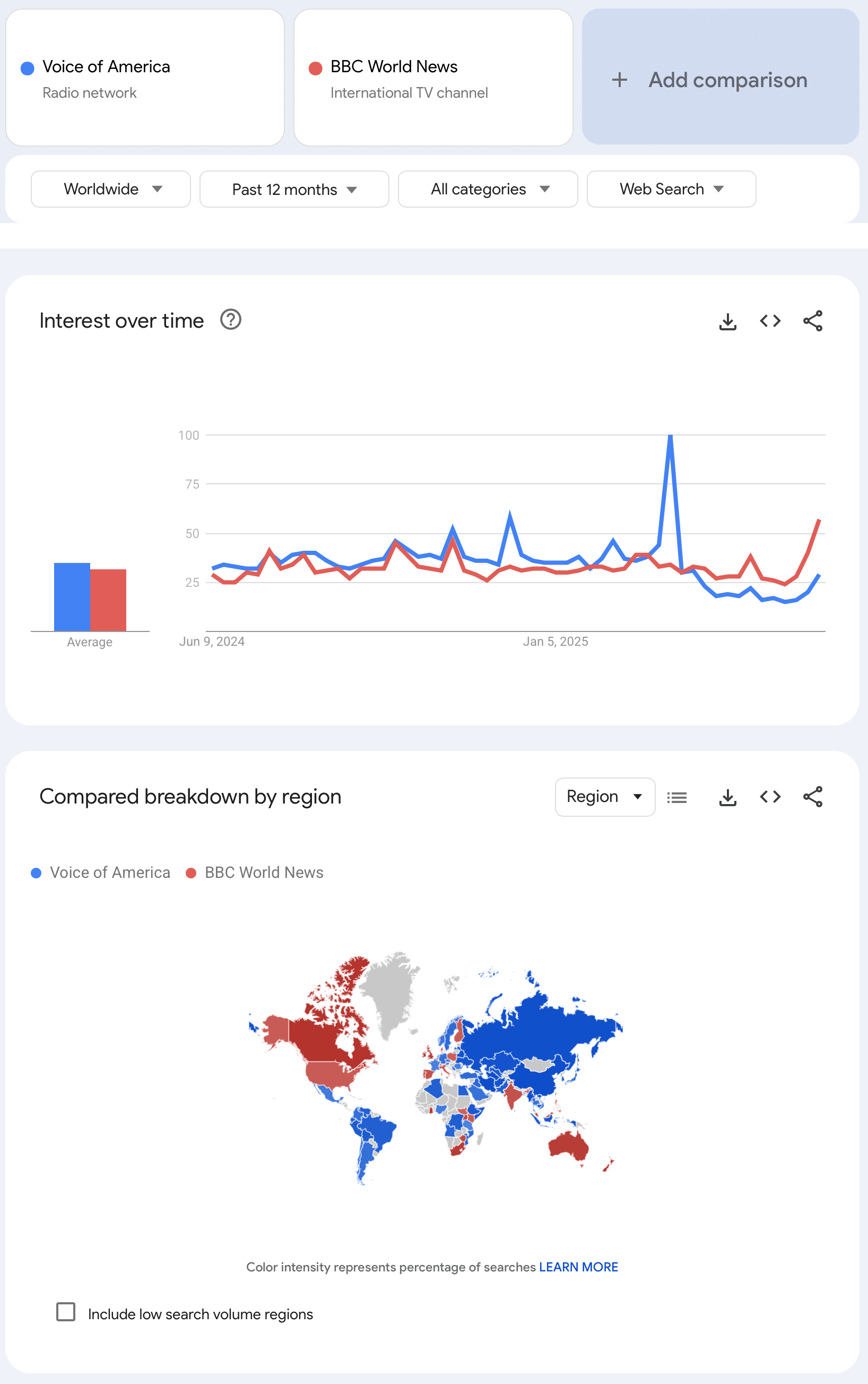 "сага" с VOA длится несколько лет, прямо о Трампе ничего плохого не говорили, но общий "активизм" конечно зашкаливал, была история с француженкой, которая предоставила фальшивые дипломы об образовании и работала в менеджменте ВОА, требовала называть палестинцев не террористами а "восставшими" от всех, с этого момента начались трения с респами в конгрессе...