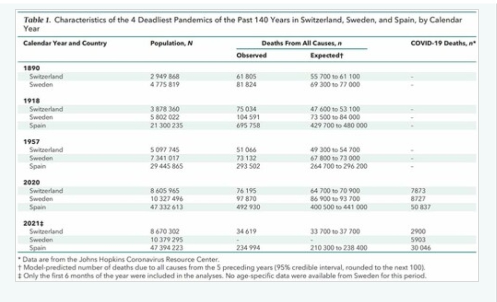 И в итоге получались любопытные ситуации. Например, в Швеции в 2021 официально от ковида умерло более 6000 человек, но при этом общая смертность была намного ниже доковидных норм. То есть мало того, что от ковида умерли те, кто так и так бы умер в том году, но еще и не умерли те, кто избыточно умер в 2020.