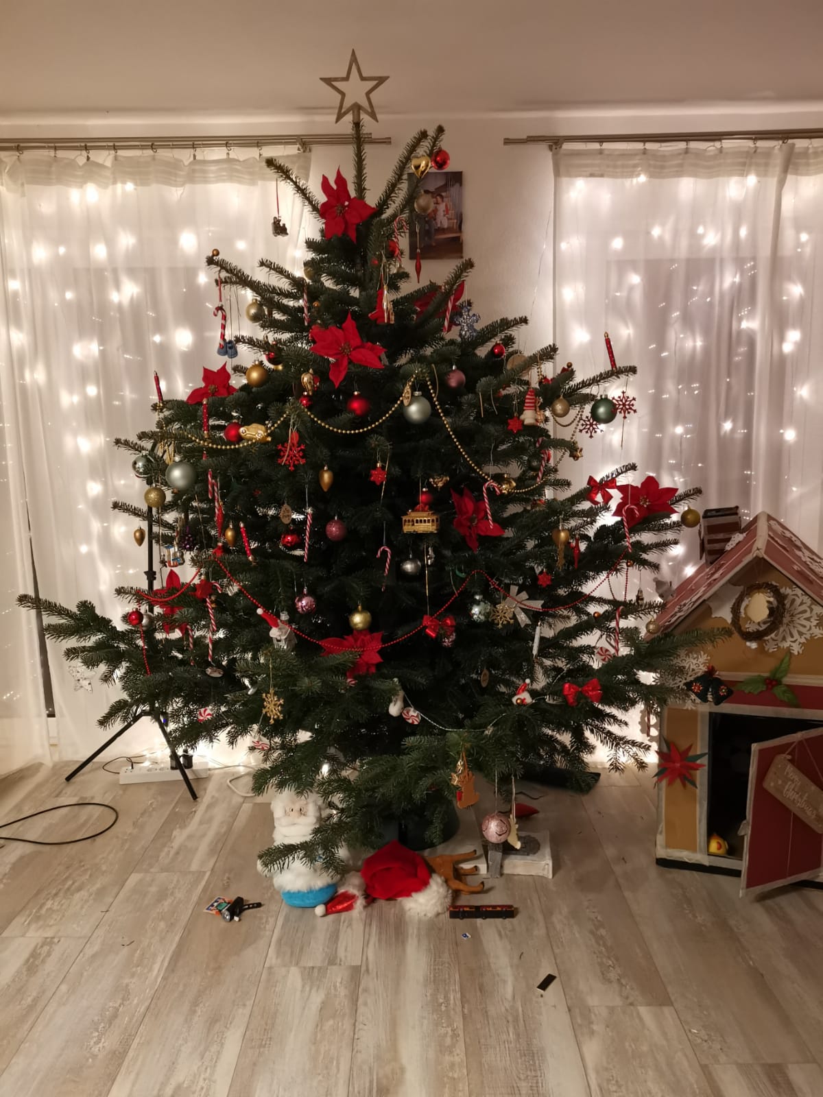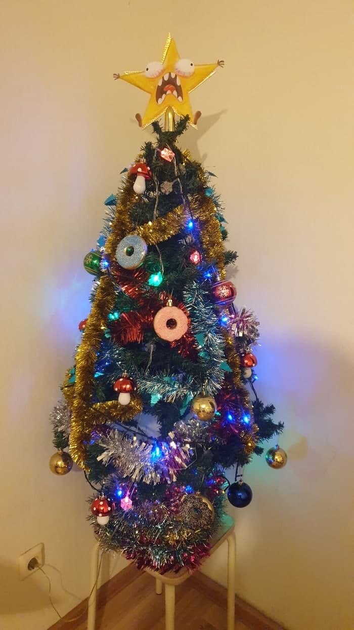 Для завершенной композиции на елке должны висеть собаки, а не олени 😄 Но попытка засчитана.