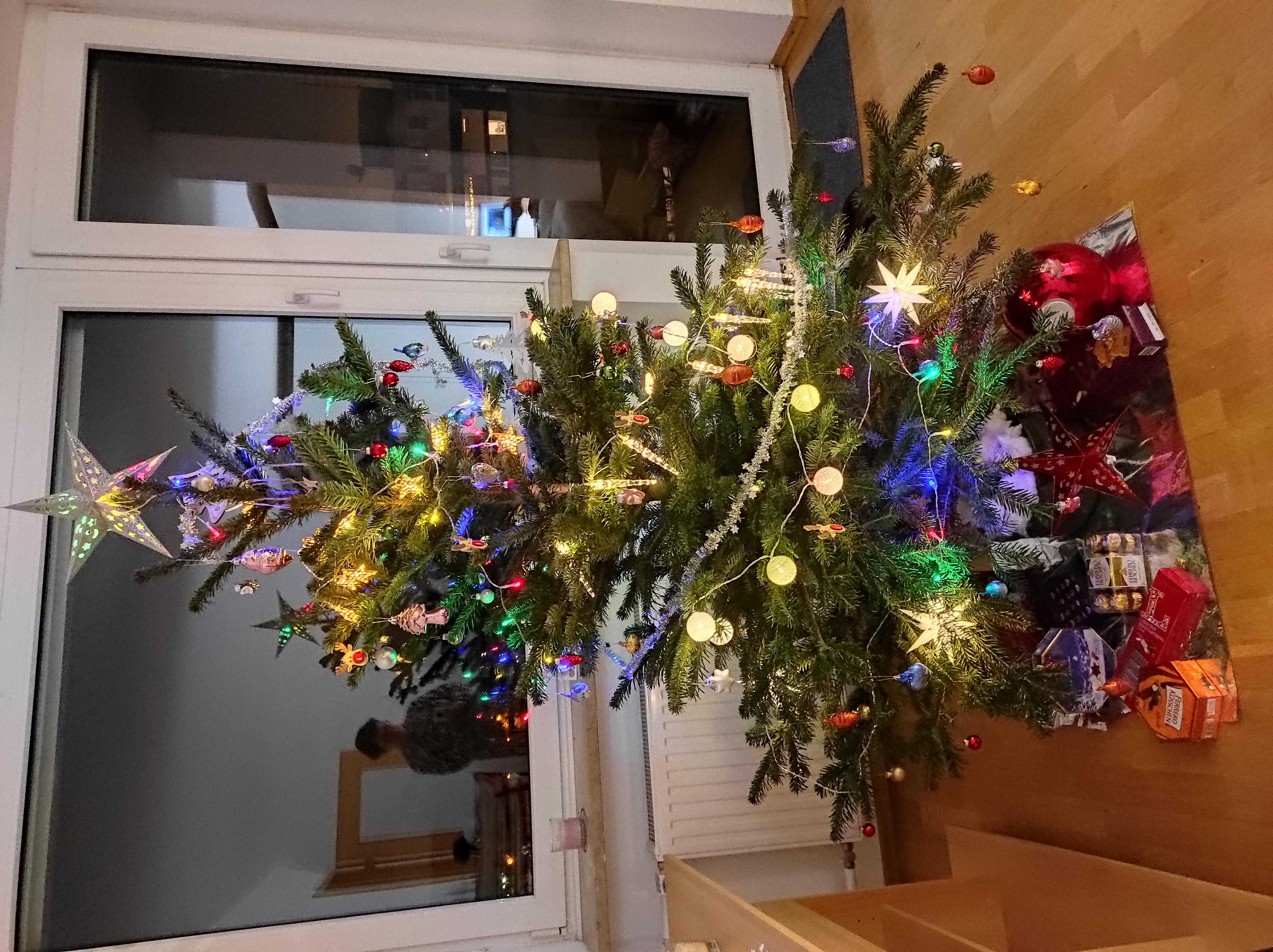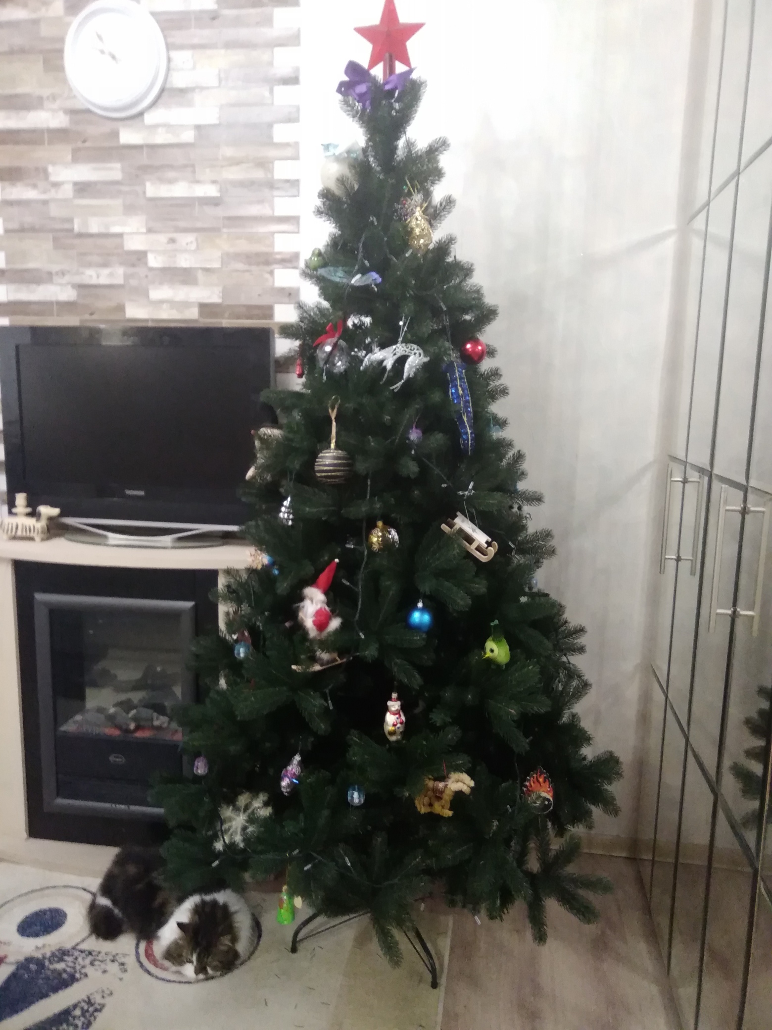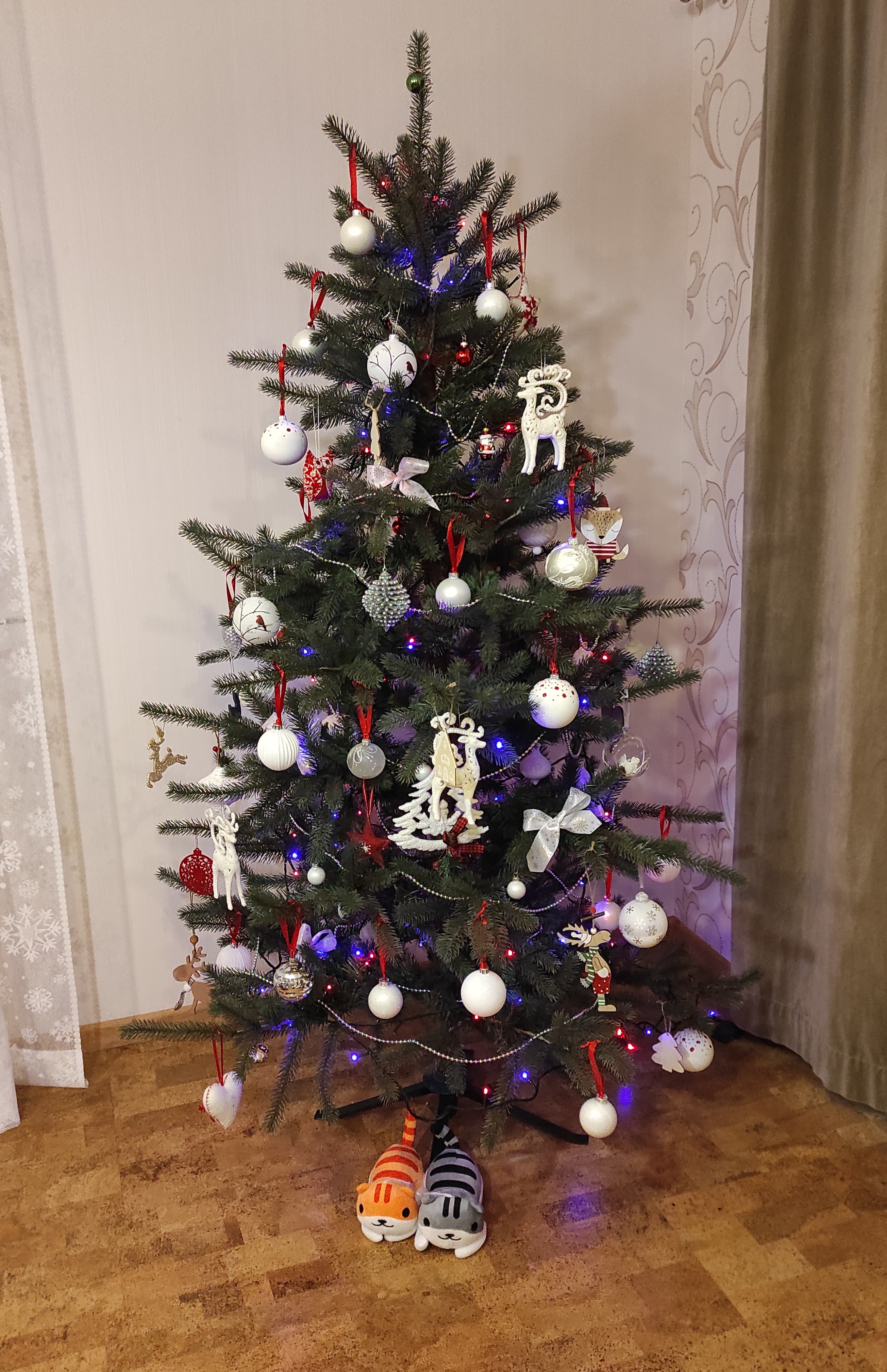 Когда дома три котэ, елка ставится в последний момент, чтобы до НГ достояла красивая. А потом уже можно отдать хвостатым вандалам, на разграбление, надолго, бывает и до Китайского НГ. Так что числа 28 поставим, не раньше. А потом уже... там видно будет, пока не надоест.