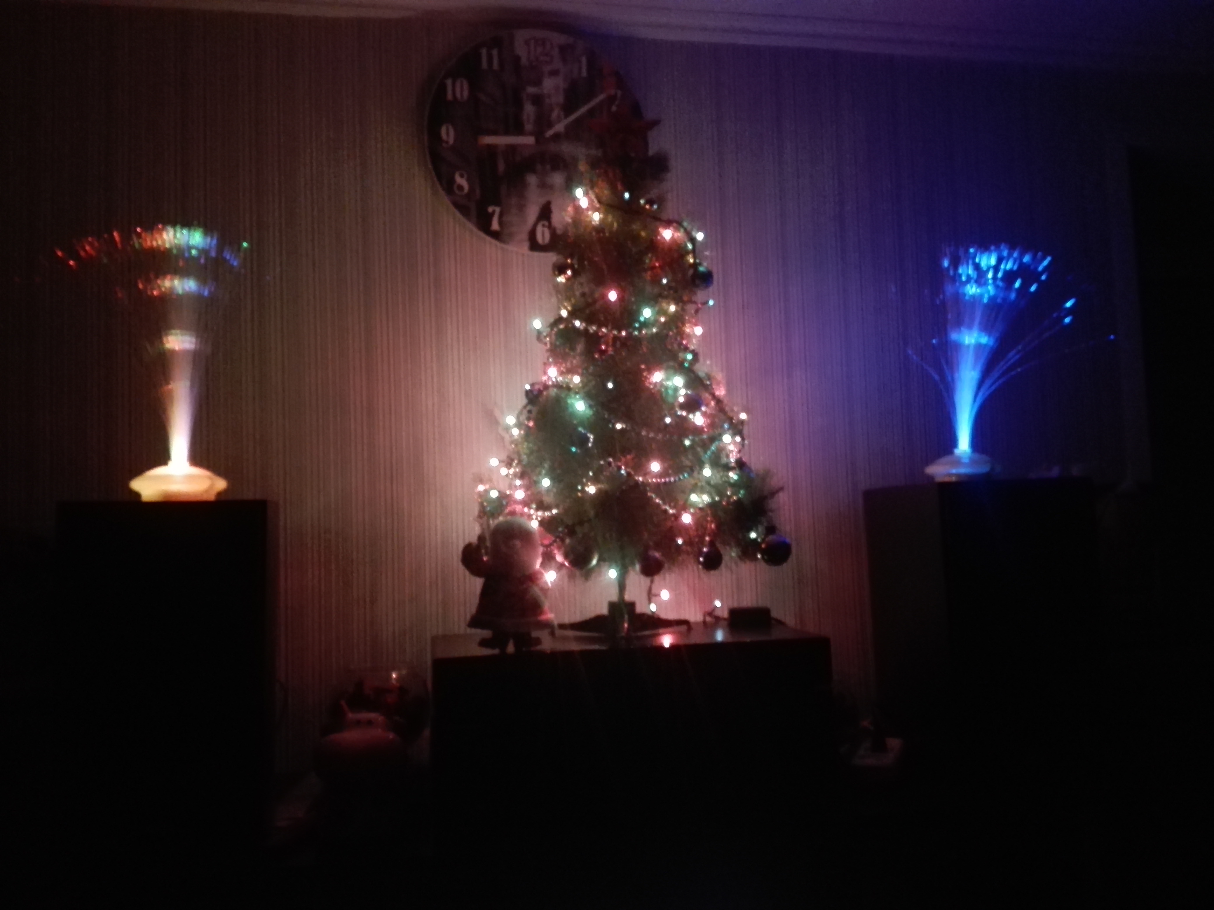 Мы пока что не поставили, но обычно ставим небольшую ёлочку и светящегося оленёнка со светодиодами.