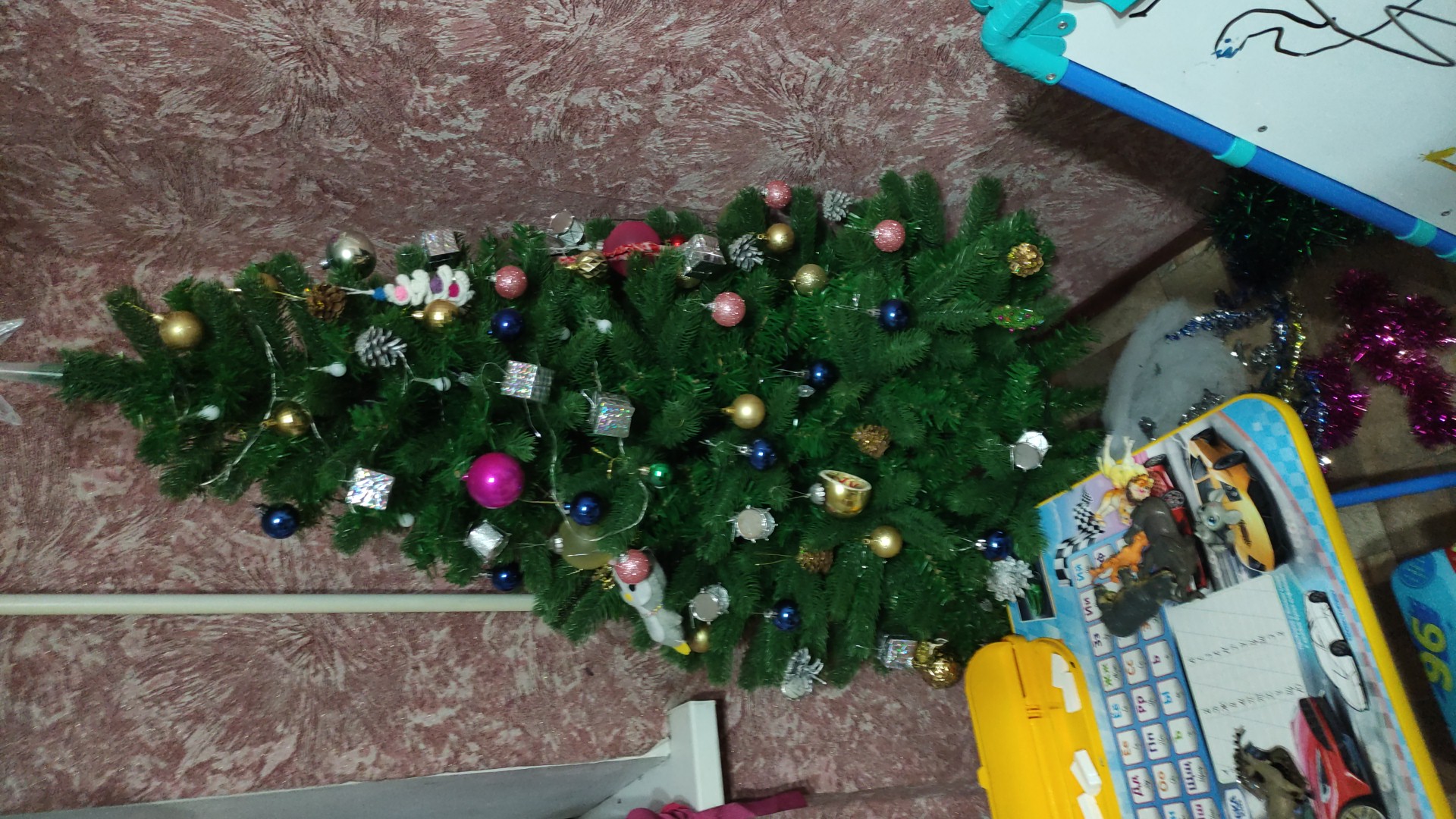 Негодяйского животного нет, но годовалый и любознательный хулиган имеется. Куцая ёлочка как раз на этот случай