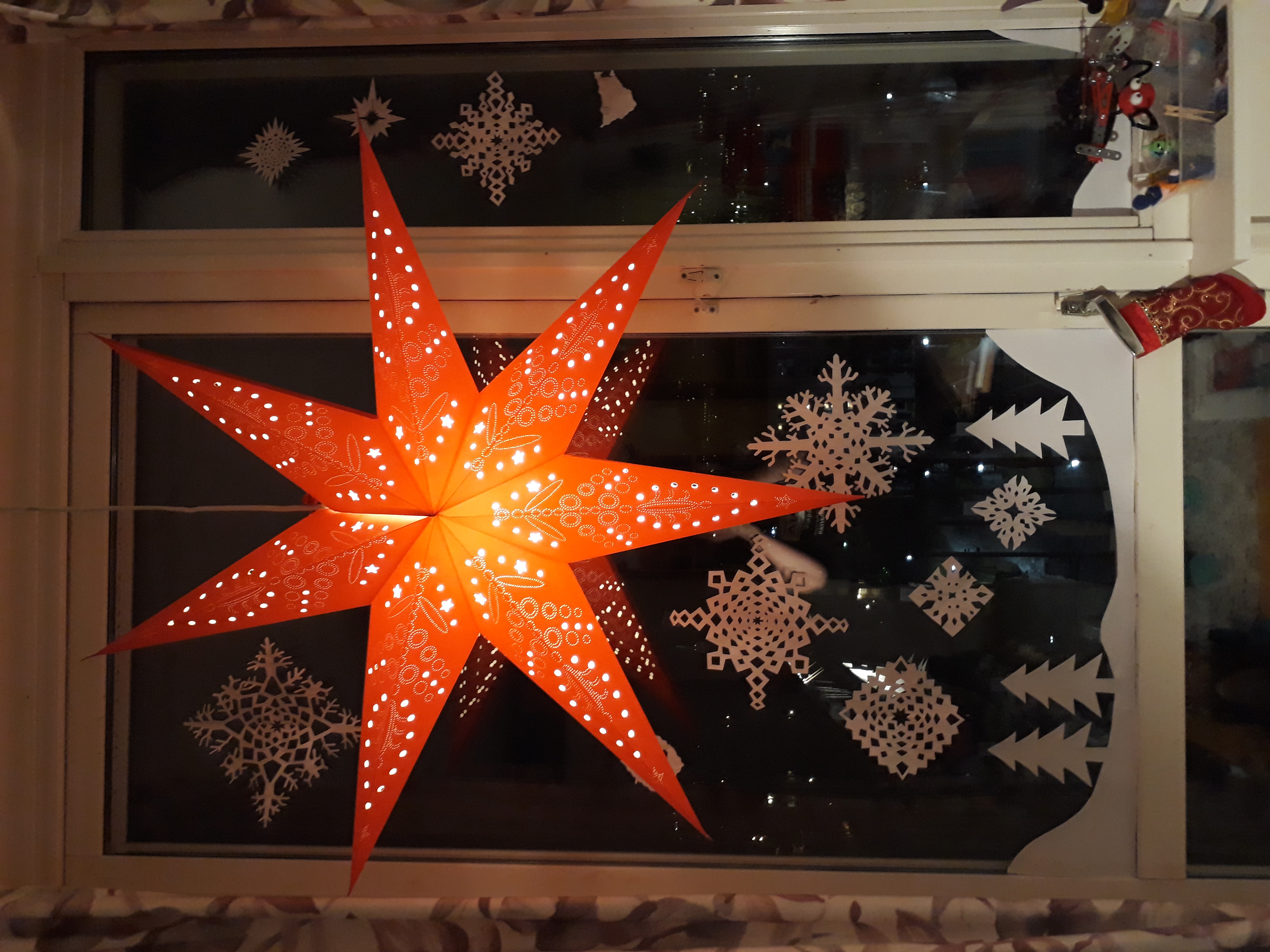 Не могу не похвалиться снежинками, которые вырезали юный джентльмен четырех лет и инженер авиаконструктор более старшего возраста ?