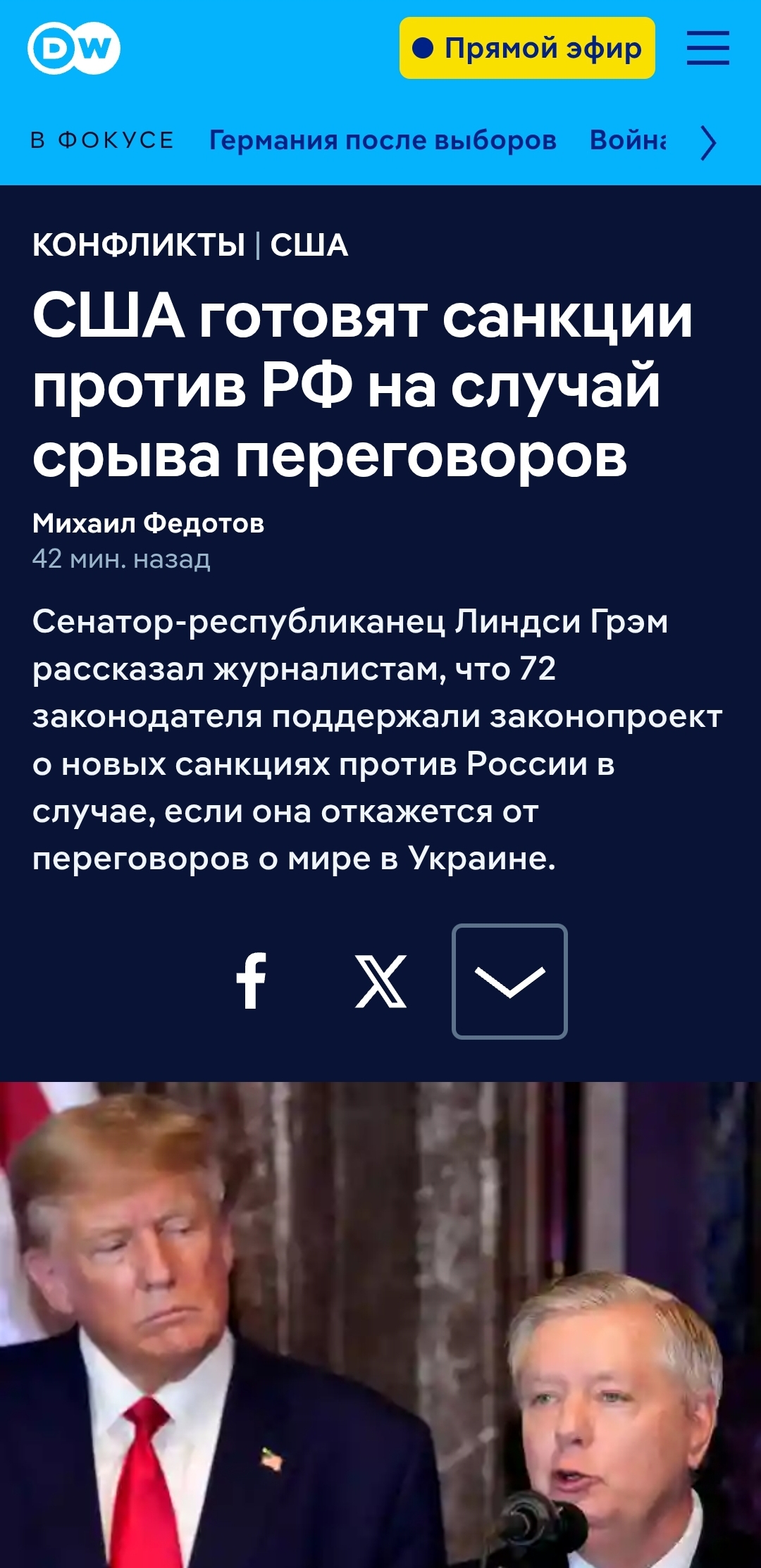 По словам Грэма, президент РФ «совершит огромную ошибку, если попытается переиграть Трампа. Этот законопроект — инструмент в арсенале президента». Он добавил: «Когда Трамп решит, что переговоры зашли в тупик, тогда и начнется действие». По его мнению, Путин в итоге окажется перед выбором: либо сесть за стол переговоров с Трампом, либо столкнуться с «уничтожением российской экономики». Белый дом пока не ответил на запрос журналистов.