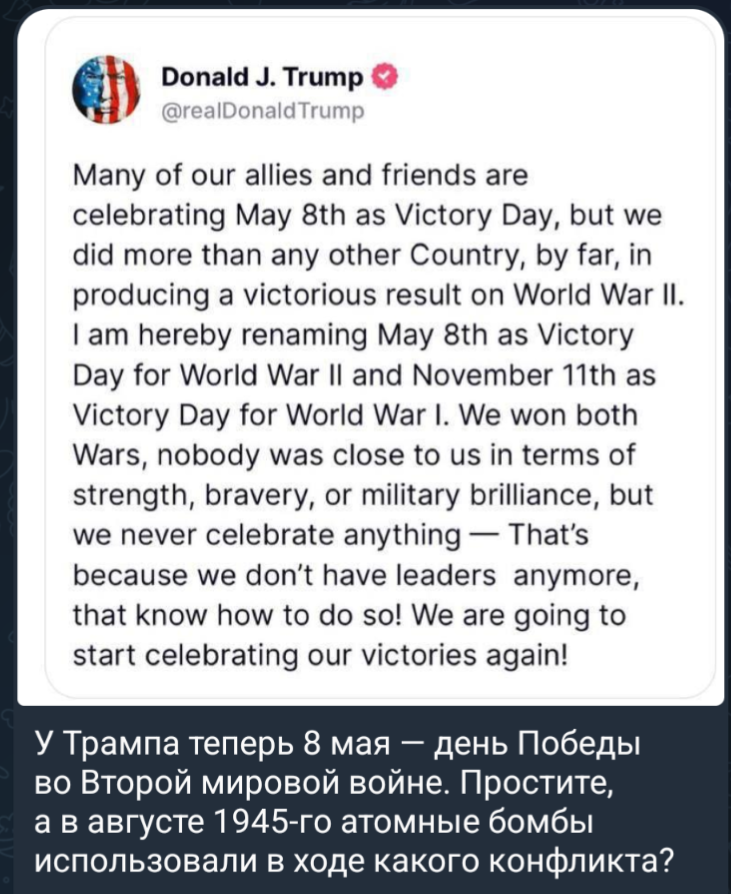 То есть, выходит, Трамп наврал - когда говорил, что остановит войну за 24 часа?
