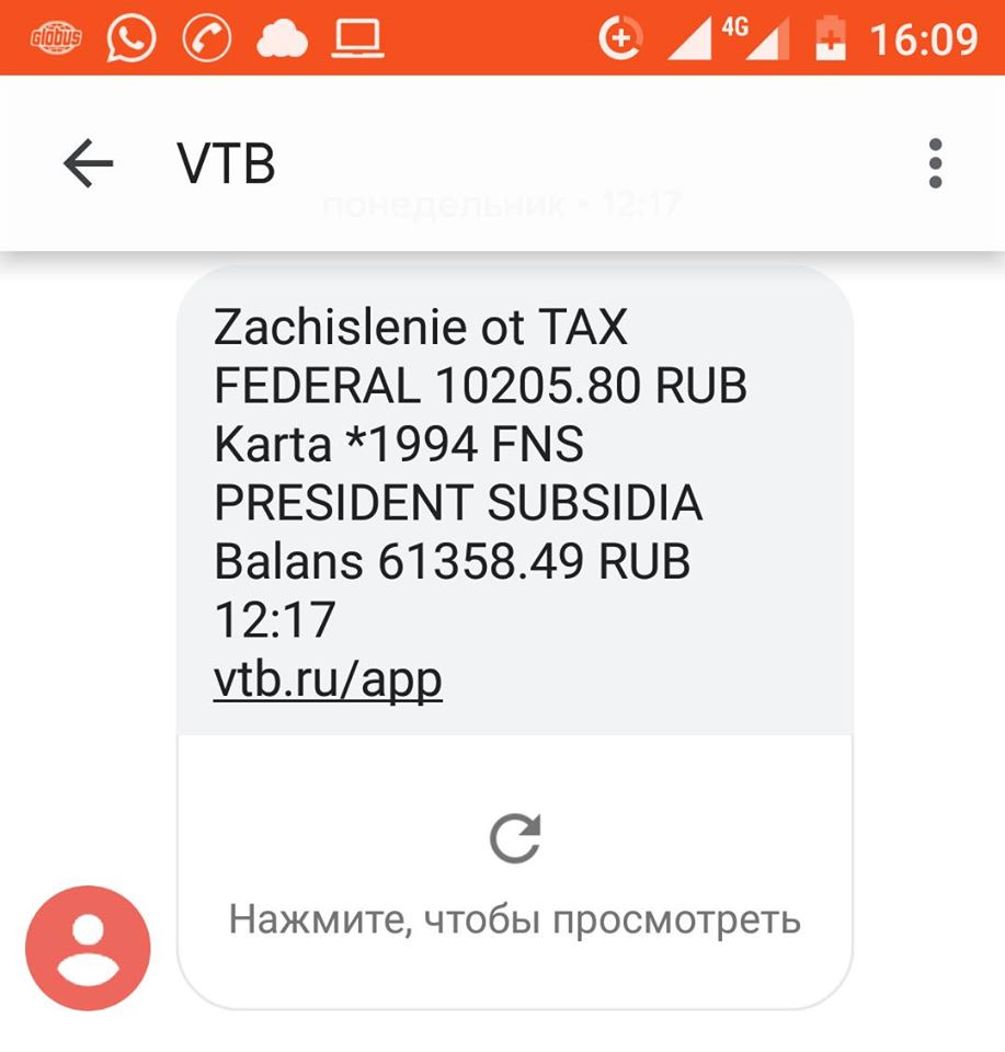 Мне 10 т.р. пришло - все мои налоги за прошлый год.