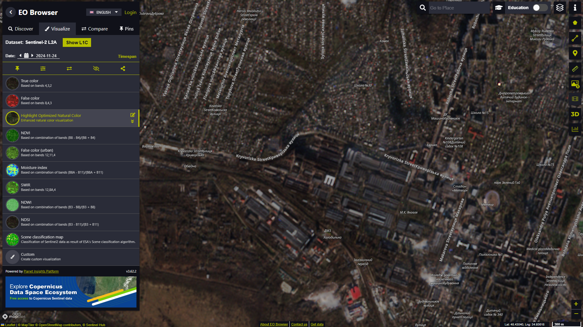 А вчера несмотря один ужасный западный спутник Sentinel-2 L2A сделал фотографии Південьмаша, по которому, якобы стреляли ваши ракетчики. Вы будете смеяться, но там завод не пострадал совершенно. Есть достаточно крупные черные пятна в частном секторе рядом с заводом.