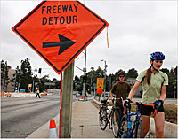 405-й фривей через весь Лос-Анджелес существует минимум сорок лет. Только он не четырехполосный, а шестиполосный (по 3 в каждую сторону). Даже в мозгах журналистов из "КП" (и других аналогичных изданий) должен был появиться вопрос, каким образом можно построить 16-километровое шоссе за 30 часов. Оно понятно, что Лос-Анджелес - не Говнобатуринск, где одну развязку на "Соколе" стоимостью в небольшой город строят уже лет пять и еще лет двадцать будут строить. Но шоссе через весь город за 30 часов - у журналиста мозги-то вообще есть?