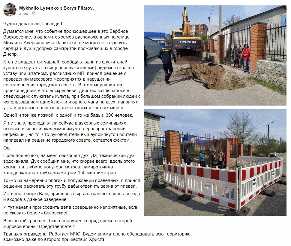 А уж эффективность от подобных действий... В Днепре больше 200 церквей, он все перекопает за 2 дня? Смешно.