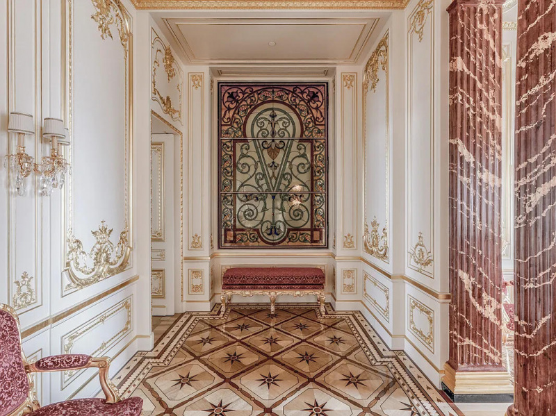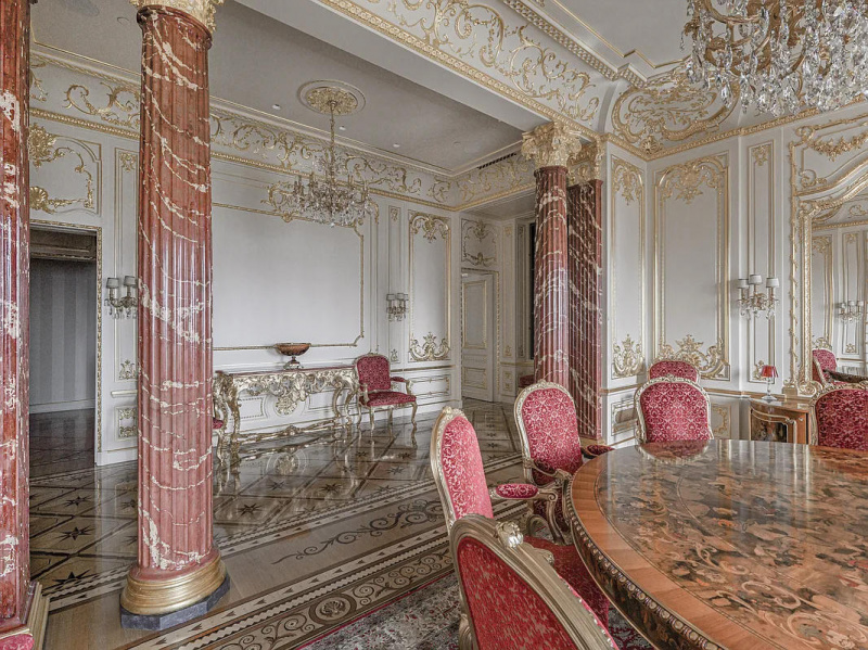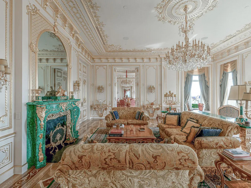 Квартира площадью 492 кв. м расположена на 10 этаже здания на пересечении Пятой авеню и Саут-Сентрал-Парк в Манхэттене, с видами на Центральный парк. В апартаментах четыре спальни, четыре ванных комнаты и собственная башенка, стилизованная под замок. Интерьер риелторы описывают как «экстремальный Версаль»: использованы отделка из 24-каратного золота, дорогие породы камня, венецианская штукатурка, сводчатые потолки.