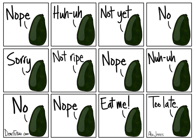 Я уже лет двадцать потихоньку овладеваю искусством выбирать хорошие авокадо, внимательно присматриваясь к его цвету и рисунку на коже. Прогресс есть, но небыстрый.