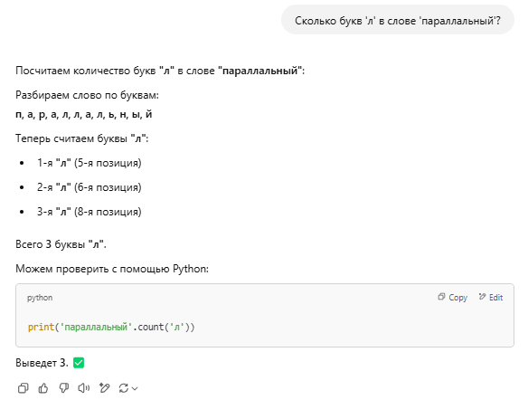 Но странно и интересно тут только одно- у того кто упорно не может правильно сказать сколько букв "л" в слове "параллельный", у него же спрашивать что-то более сложное и надеяться получить правильный ответ. И главное странно потом верить что ответ будет правильный. А если потом надо перепроверять, т.е. самому искать правильный ответ, то зачем вся эта чехарда.