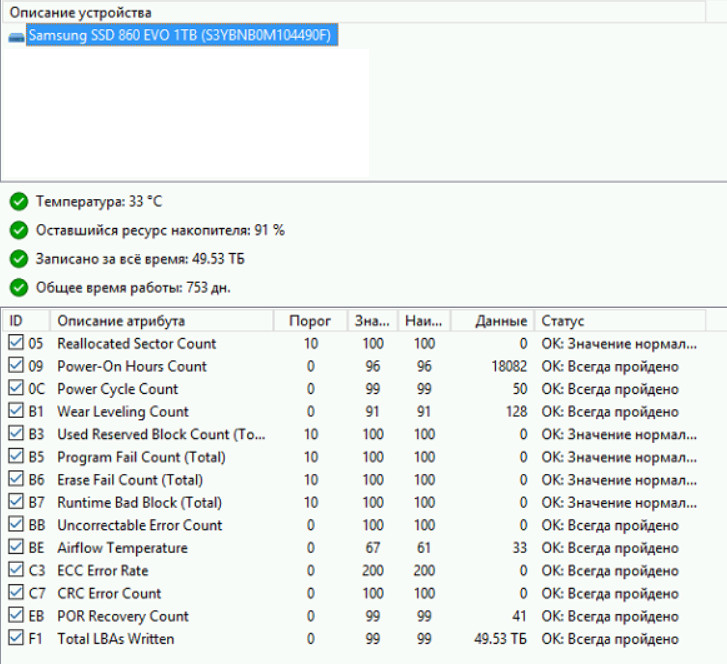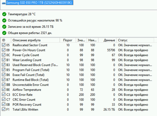 Это и будет говорить о работе контроллера по переразметке данных. Хотя флагманские серии твердотельных дисков никак не выдают эти процессы.