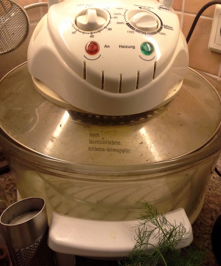Спрашивают, почему для этого не использовать духовку - у меня что, духовки нет? Духовка есть, очень продвинутая. Однако с духовкой возни намного больше. Сначала из нее нужно все достать, поставить на разогрев, после разогрева засунуть на противне продукт, приготовить, достать противень, поставить его на какие-нибудь подставки, подождать, когда все остынет, засунуть всякие противни и емкости обратно - целое дело.