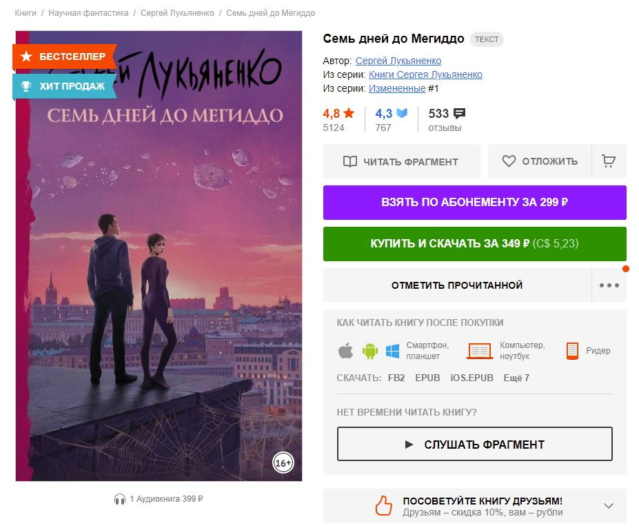 Всего 5 канадских долларов, надеюсь канадская карточка сработает в русском магазине. Пока другую книгу дочитываю, эта будет в очереди на прочтение. Спасибо за отзыв.