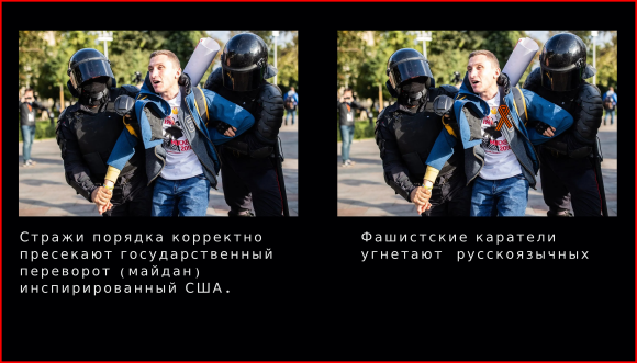 Еще одна сцена была где штатский менту в табло заехали и мент упал. Так другой мент этого боксера не задержал, нет - отшвырнул в толпу. Все это задел на будущее.