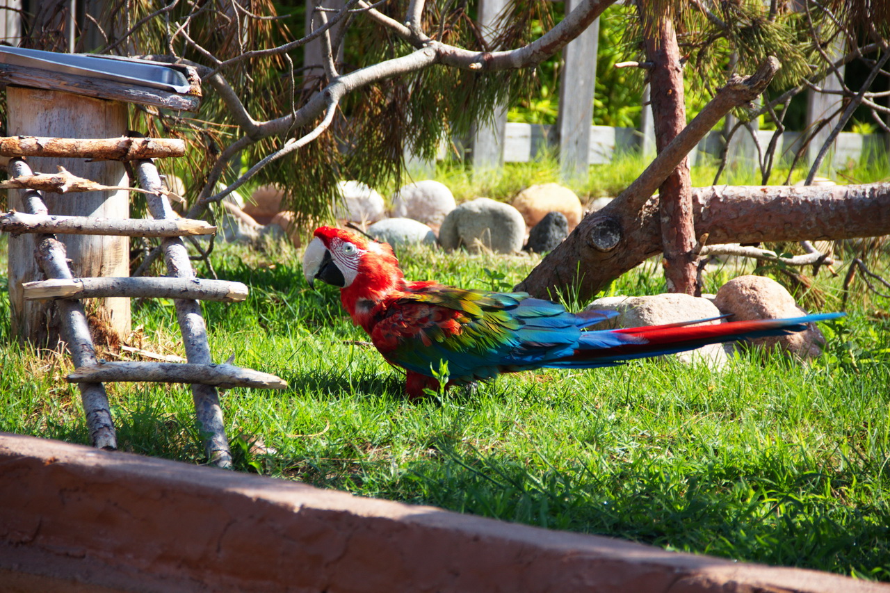 Шикарные попугаи по парку разгуливают и летают совершенно свободно - радуют посетителей.