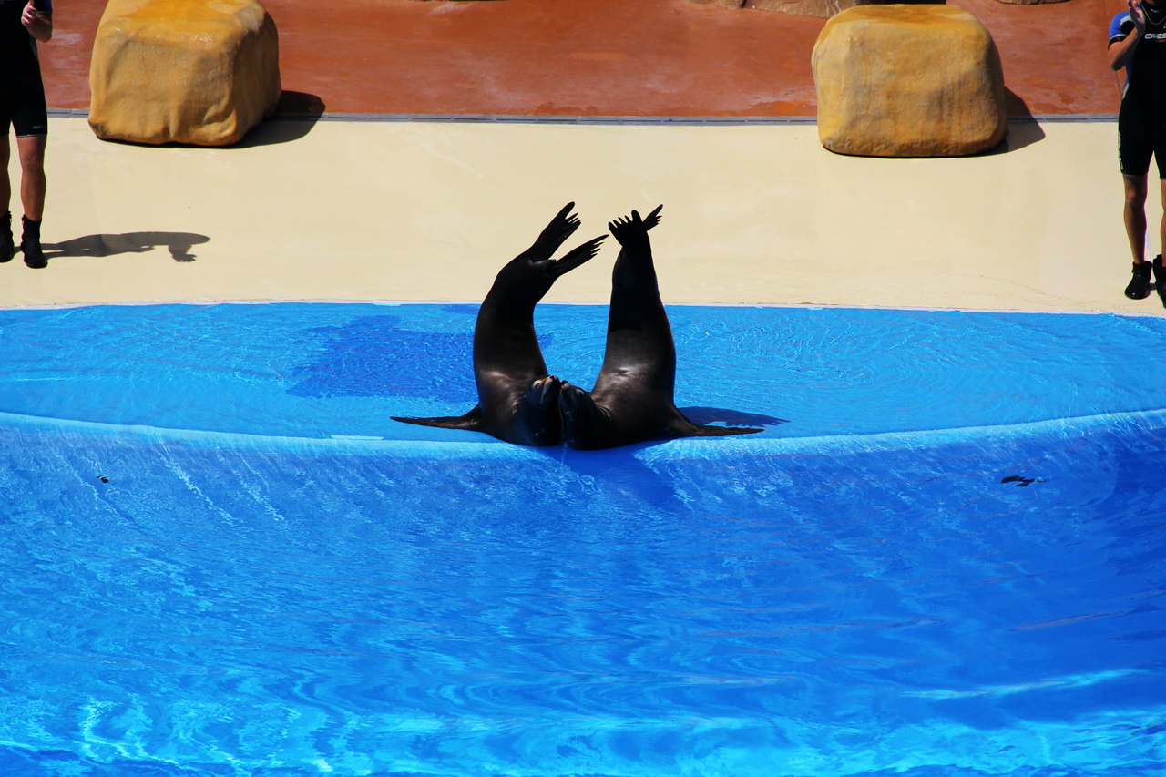 После этого отправились на главное представление Marineland - шоу морских котиков и дельфинов.