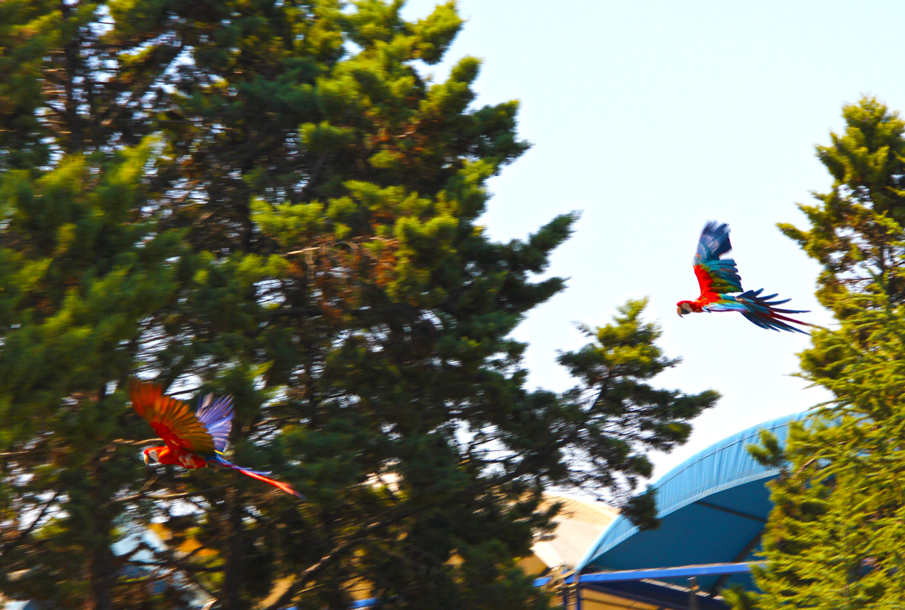 На шоу попугаев традиционно было много народу, а попугаи работали с огоньком - несмотря на то, что они это шоу повторяют каждый день по два раза.