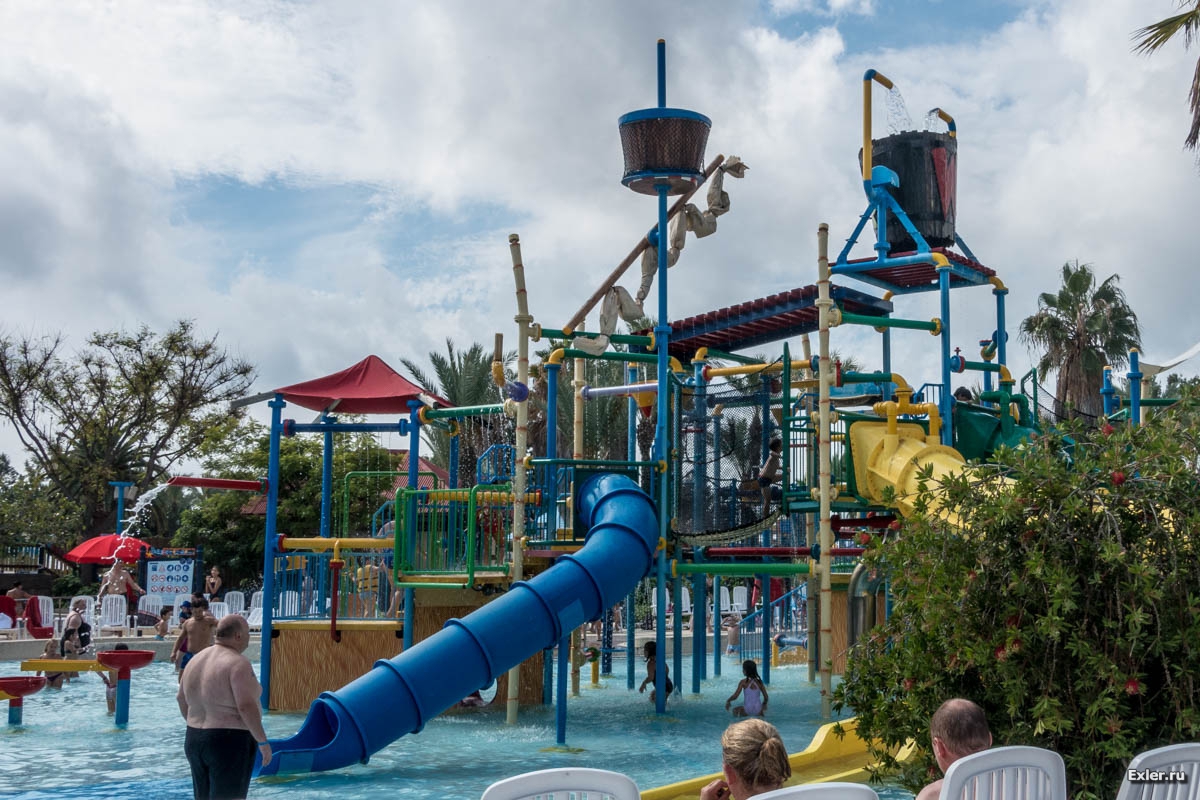 Еще один аттракцион для малолеток. Каждые пару минут бадья наполняется и обрушивает потоки воды на детишек.