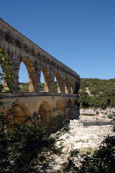 Показали нам остатки старинного римского акведука, которому 2 тысячи лет. По нему вода доставлялась на 50 километров. Через реки римлянам приходилось строить вот такие мосты, чтобы уровень желоба оставался неизменным.
