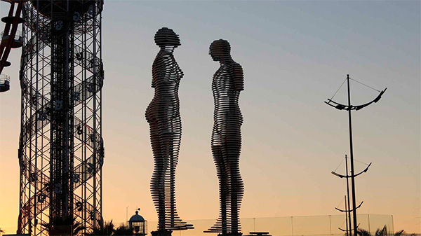 Оказывается, что композиция называется "Али и Нино", расположена она в Батуми на берегу Батумской бухты. Автор проекта - уроженка Тбилиси Тамара Квеситадзе: она какое-то время жила в Италии, а затем переехала в США.