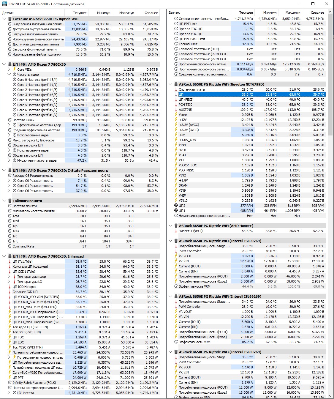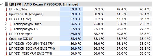 Вот температуры но моем проце Ryzen7 7800x3d на Win10 с Хромом, в котором висит в фоне под сотню открытых страниц.