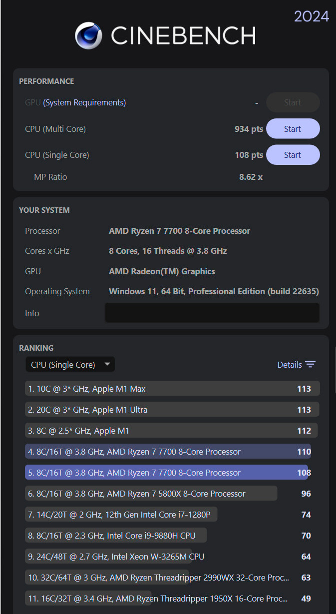 По результатам всех этих манипуляций с AMD Ryzen 7 7700.