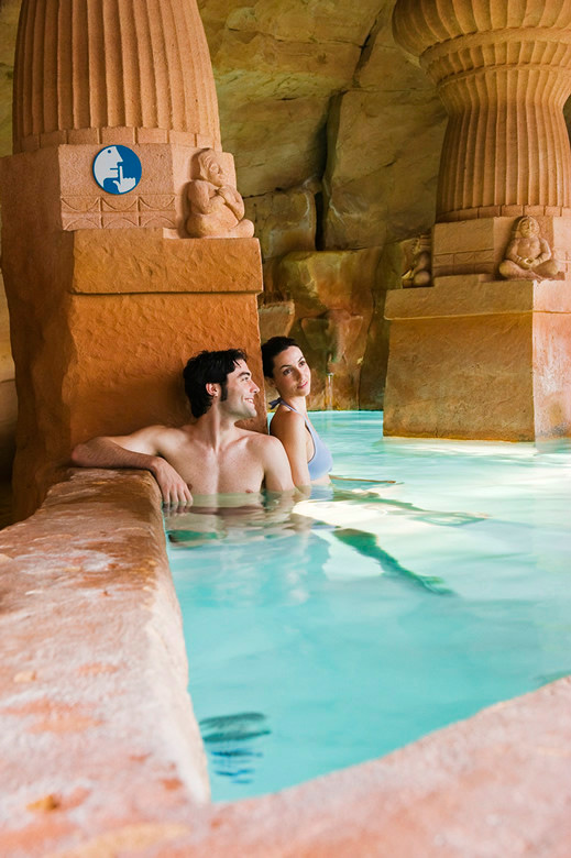 Отдельное помещение - бани в индийско-римском стиле. На деле - один малюсенький бассейник с горячей водой и купель с холодной водой. Туда обычно набивается дикое количество народу, так что отдохнуть получится разве что у кого-нибудь на голове.