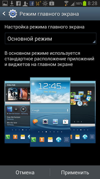 Режим главного экрана (в стандартной оболочке) теперь можно упростить - для ускорения работы.
