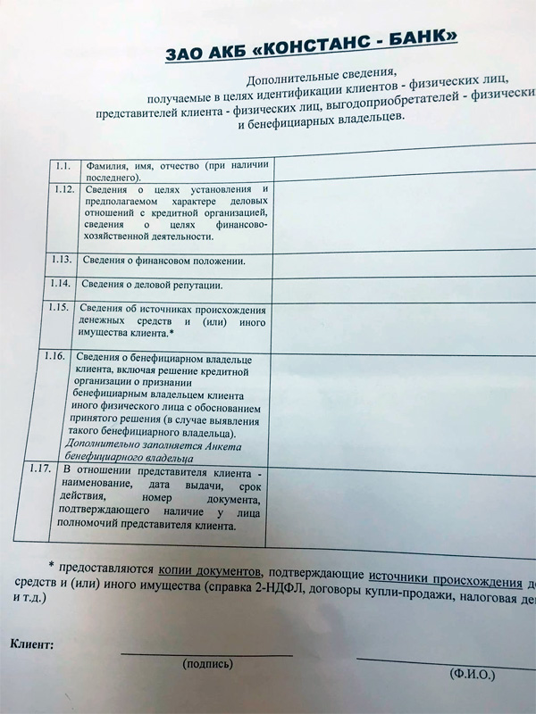 Ну, приняли и приняли, мало ли они понапринимали за последний десяток лет. Однако мне тут прислали саму анкету дополнительных сведений, и вот она - это что-то с чем-то! Прошу полюбоваться.