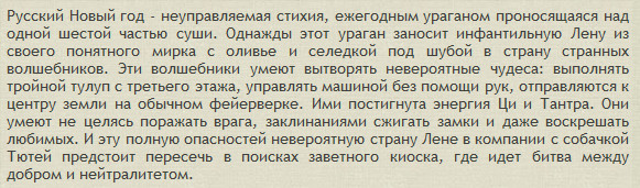 Ruskino - ресурс, конечно, хороший и полезный, но некоторые анонсы к фильмам там явно написаны под бутиратом. Вот, например, анонс к "Стране ОЗ" (я вчера посмотрел, в понедельник будет рецензия). Собачку, кстати, зовут Дюдя, а не Тютя.