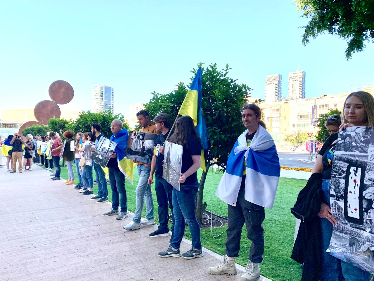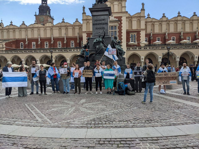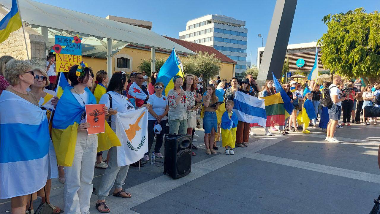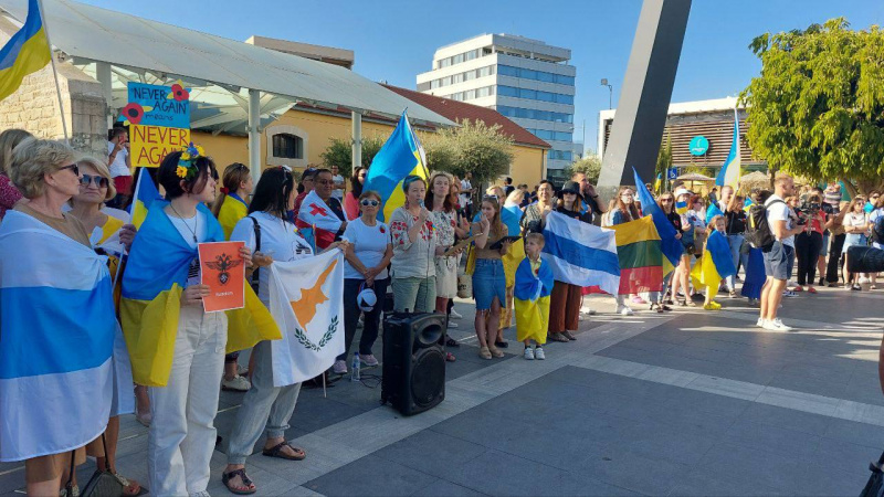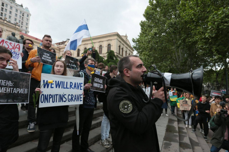 Вчера, 8 мая, в различных городах Европы проходили антивоенные акции. В них участвовали украинцы с украинскими флагами и россияне под бело-голубым российским флагом (российский флаг без крови). (Отсюда.)