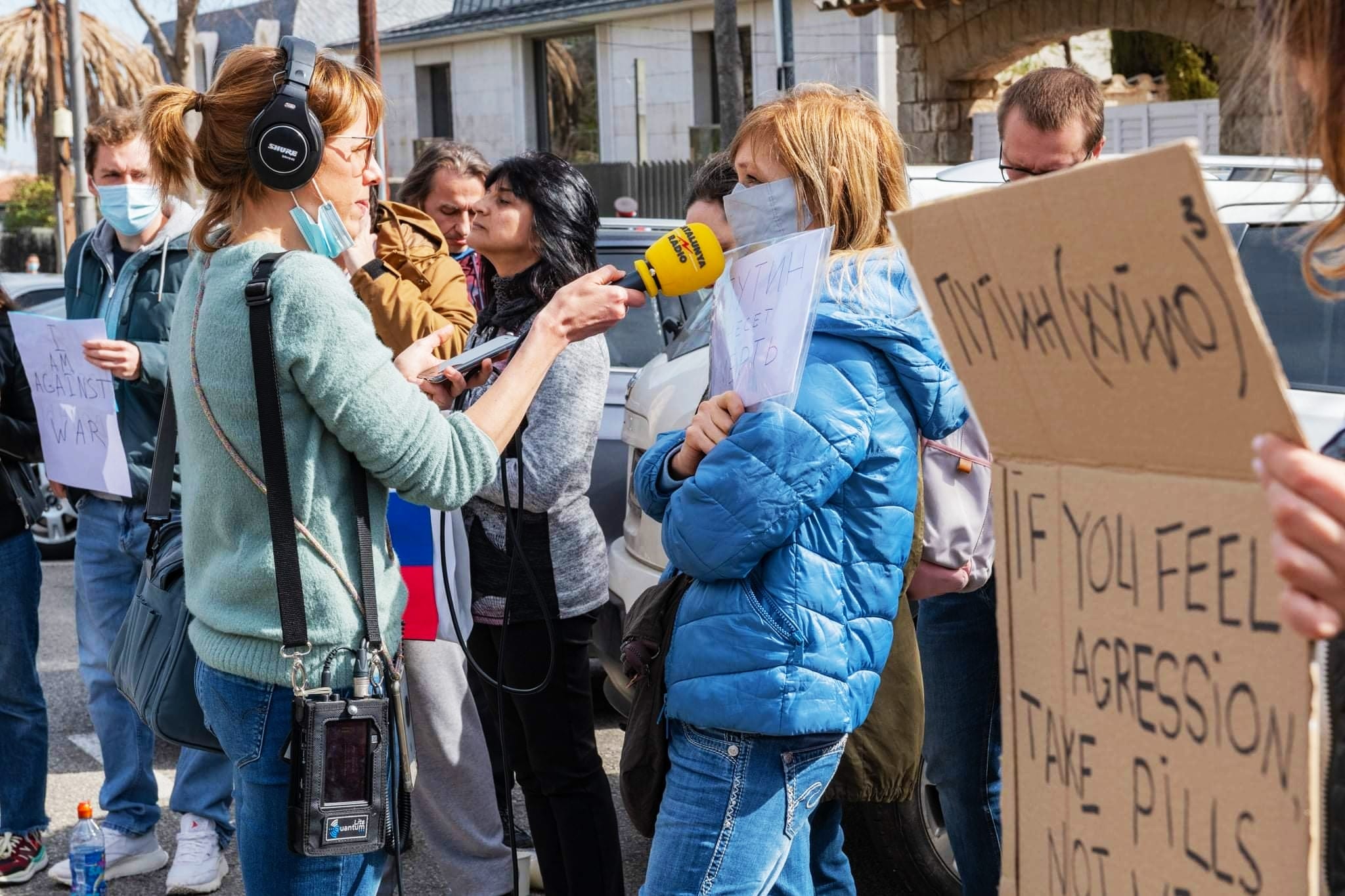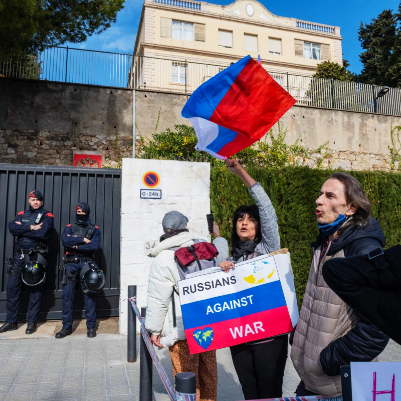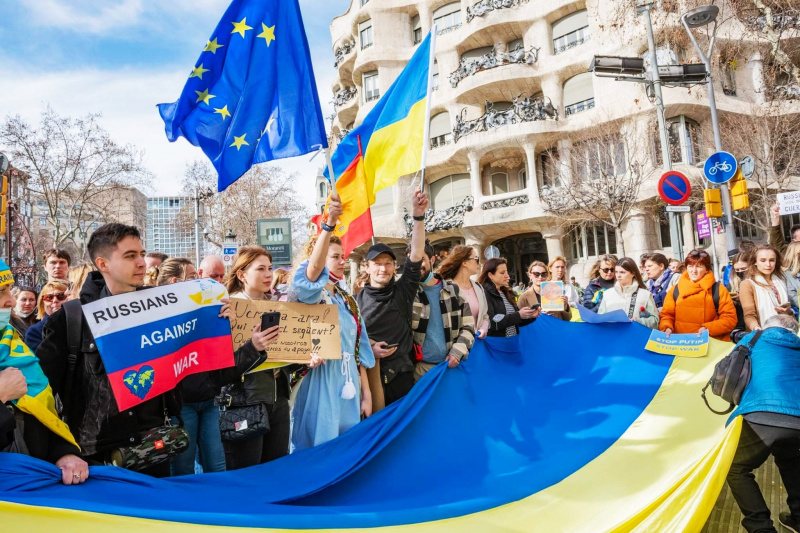 Украинцы, россияне, беларусы, грузины, молдаване, каталонцы выходят на улицы, стоят плечом к плечу, поют гимн Украины и скандируют "Путин хуйло".