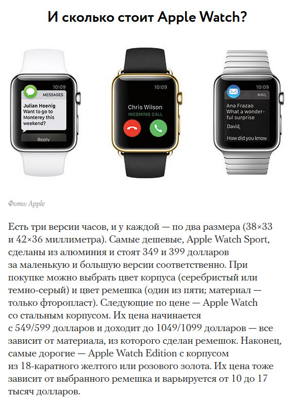 Пластик от $350 до $400, стальные от $550 до $1100 и золотые от $10 тысяч до $17 тысяч?!! Эти ребята - гении. Так красиво обувать клиентов умеют только в Apple, сказал я и посмотрел на свои LG G Watch R, которые на порядок красивее, хотя и стоили всего 230 баксов.