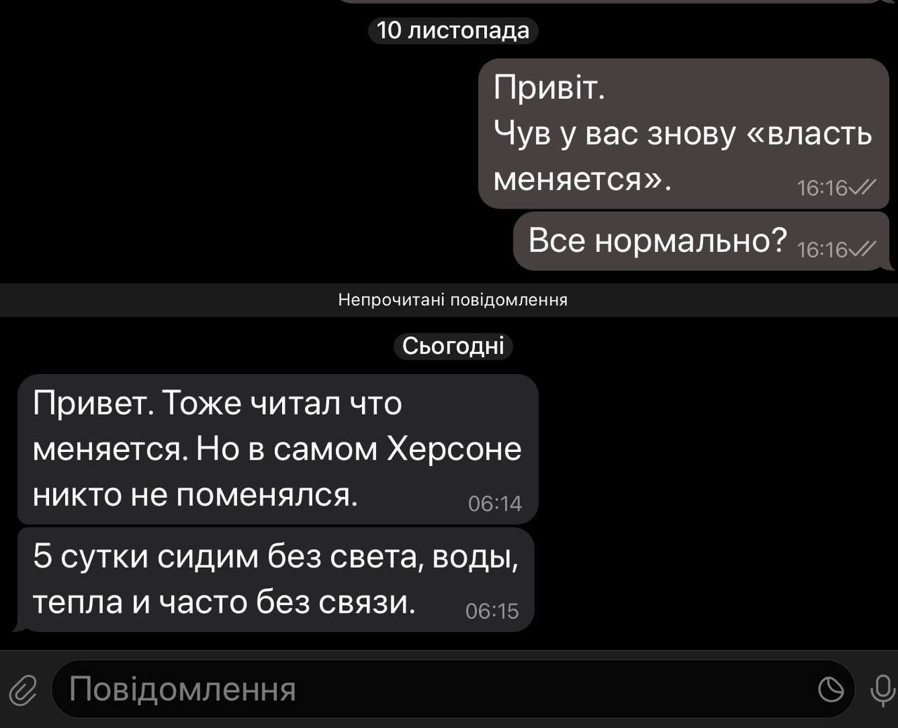 Взорваны объекты энергоинфраструктуры, водообеспечения, котельные, телевышка. Пишут также про взорванную Херсонскую ТЭЦ, но пока не верится.