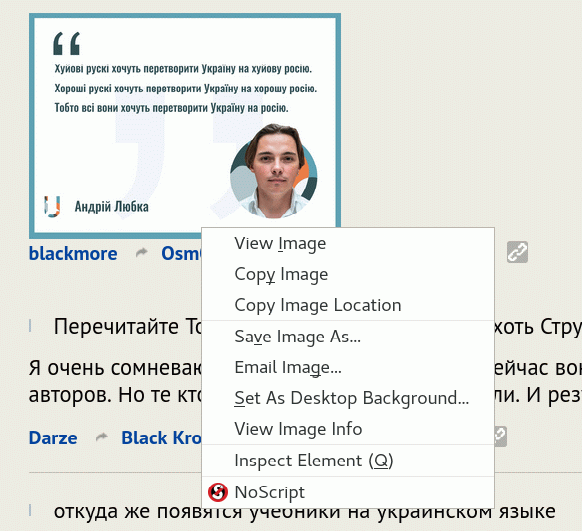 Один Митець сформулировал украинскую национальную идею в отношении россии еще проще, но по-прежнему не особо выбирая слова.