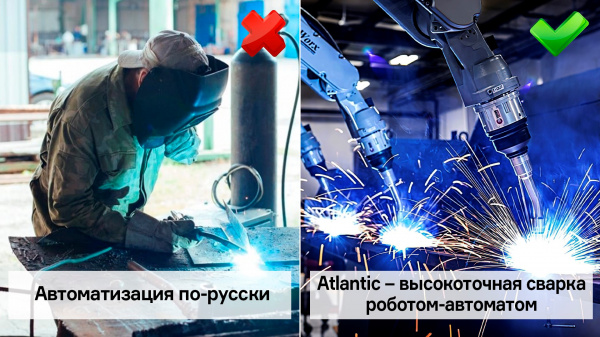 Atlantic – это французские технологии, итальянский дизайн и сборка на двух собственных фабриках в Турции. Суммарно компания инвестировала в предприятия по производству полотенцесушителей $78 миллионов. Это дорогие, максимально автоматизированные линии со стабильно высоким качеством выпускаемой продукции. Когда трубки сваривает не Петрович с похмелья вручную, а робот-автомат за $5 миллионов, то получаются долговечные, едва заметные аккуратные швы.