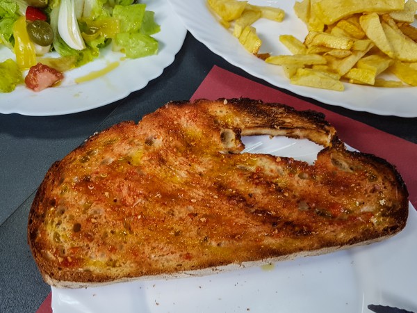 На разгон овощной салатик из своих овощей, знаменитый каталанский хлеб: к нему подают помидоры, чеснок, масло и крупную соль - натираешь хлеб сам, как тебе нравится.