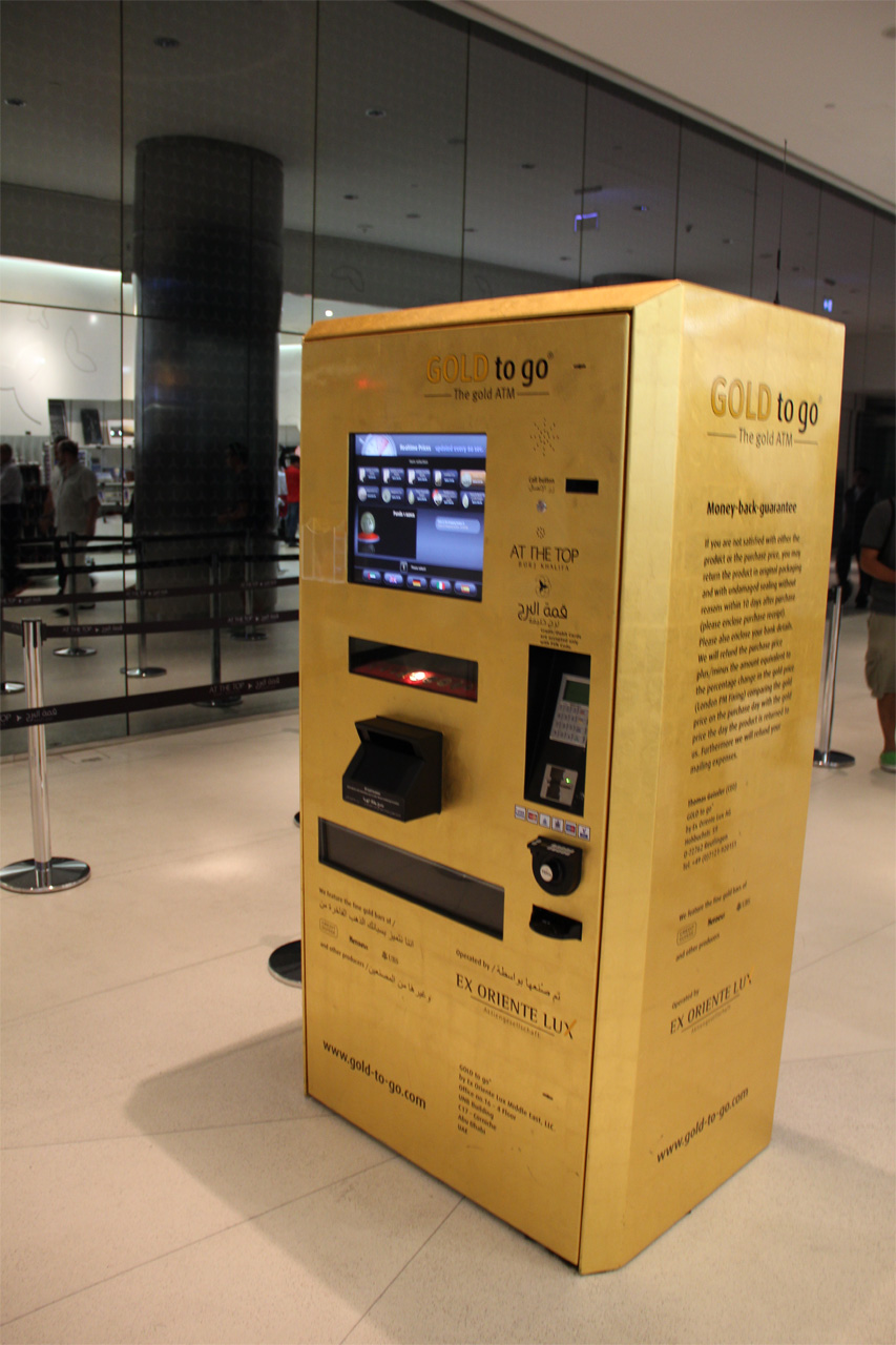 Чисто эмиратская хохма. Идете вы по улице или торговому центру и вдруг понимаете, что нужно срочно прикупить золотишка. Ну, вступило вам. Не беда! Почти на каждом шагу - соответствующие автоматы, где эту страсть можно тут же утолить.