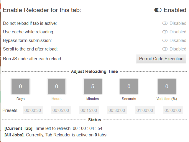 Мне в течение дня приходится поглядывать на самую разную меняющуюся статистику, которая выводится в разных вкладках специального браузера (у меня основной браузер - FireFox, а Chrome используется как раз для статистики). Ну и когда я захожу посмотреть соответствующие вкладки, то их приходится перезагружать, чтобы обновить данные. Так вот, не прошло и десяти лет, как до Холмса дошло, что наверняка должен быть какой-нибудь плагин, который умеет перезагружать определенные вкладки с заданной частотой.