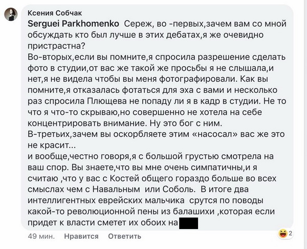 Ну, строго говоря – чуть более трезвое мнение всё же на стороне К&К Собчак(ов) (не думал, что такое скажу)). Пархоменко откровенно "радикалит", поэтому упрёки в адрес его точки зрения вполне справедливы.